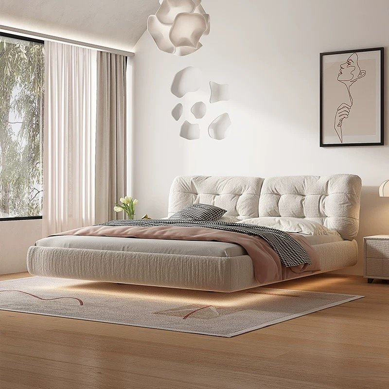 Bedroom Furniture King Size Bed Modern Luxury Up-holstered White Platform Wooden Queen Size Bed