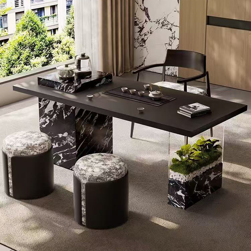 balcony tea table setitalian inspired new chinesesolid wood rock slab tablesintered stone outdoor tablecompact luxury furniturehigh end tea lounge setminimalist