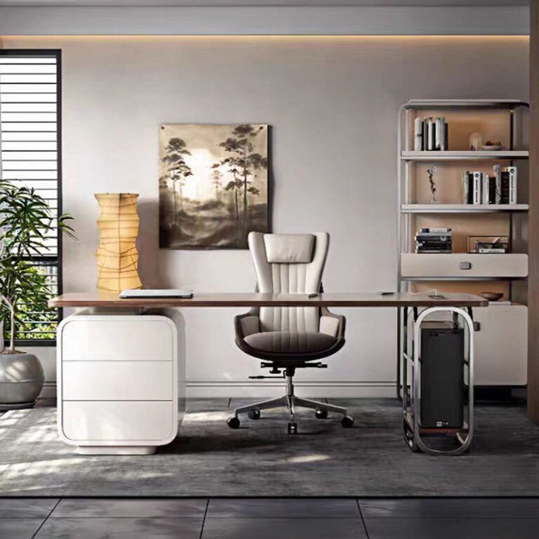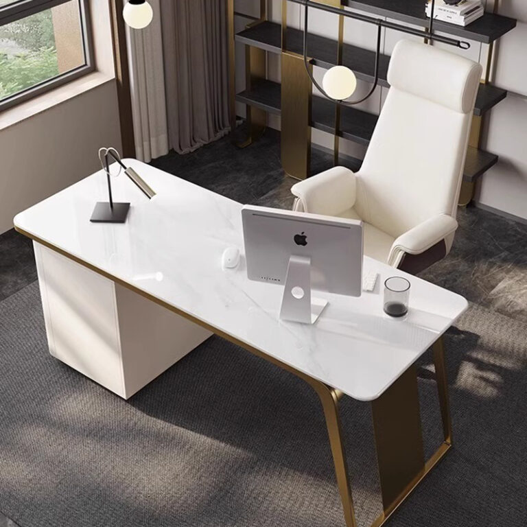 Modern Office Desks Computer Table Furniture Luxury Leather Top Work Desk White Home Office Desk and Chair