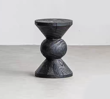 Modern Wabi-Sabi Style Carbonized Solid Wood Creative Light Luxury Low Stool Home Bedroom Side Table Coffee Table
