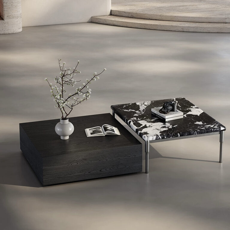 Modern Design Living Room Black Slate Top Coffee Table Luxury Rectangle Low Plinth Marble Coffee Side Table