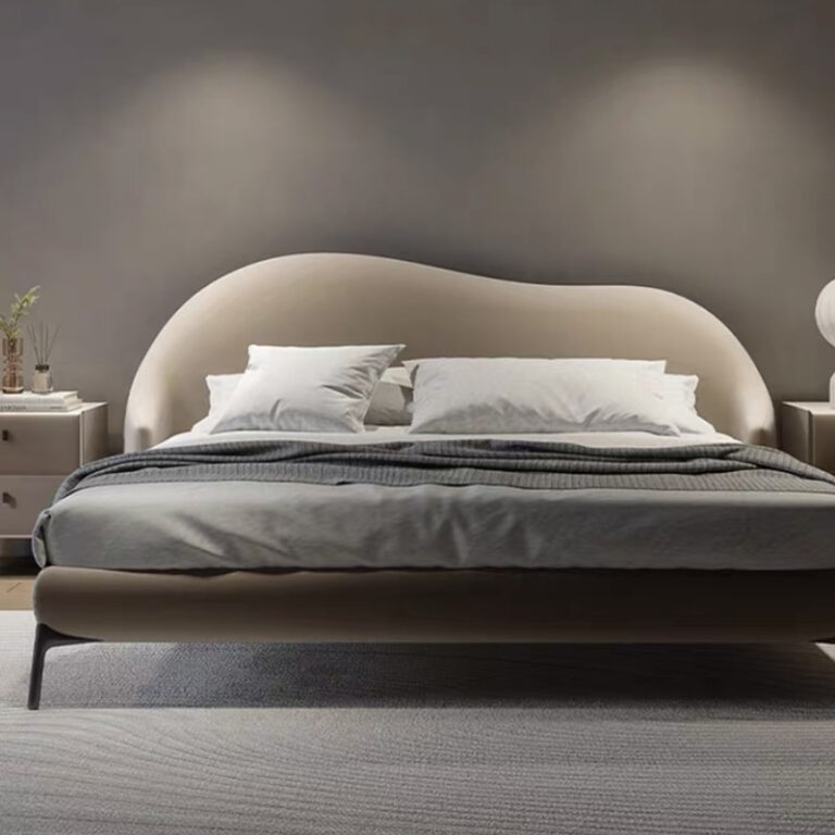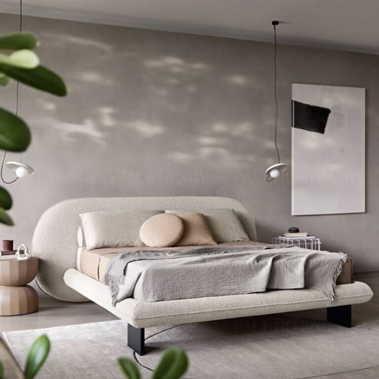 Italian Modern Simple Bedroom king Size Cloth Bed Simple Bedroom Designer Furniture Lamb Wool Fabric Loft Hotel Double Beds