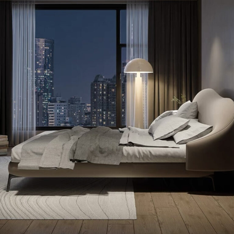Italian Modern Luxury Minimalist Queen Bed Solid Wood Up-Holstered Light Bedside Instagram Popular Bed for Master Bed