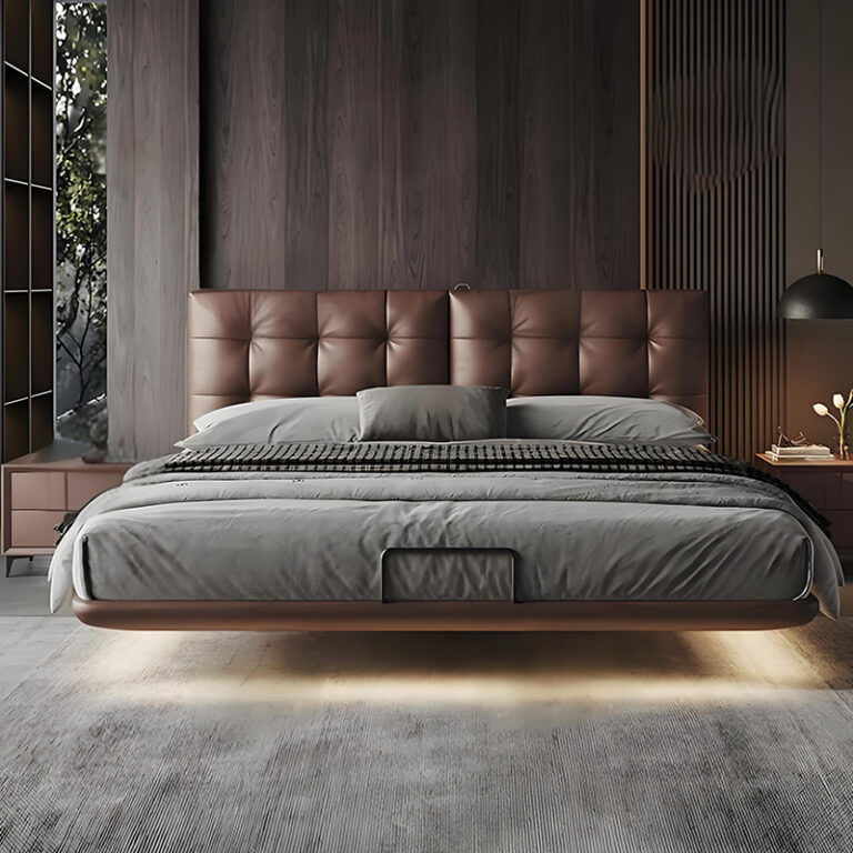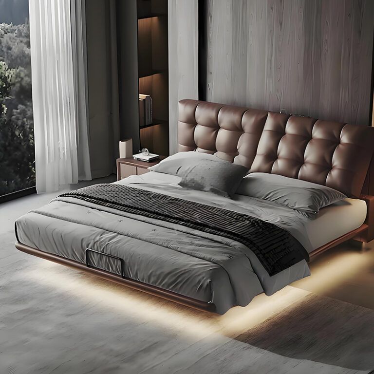 High Quality Special Led Lights Bed Leather Headboard Sofa Luxury Size Hotel Home Bedroom Creative Furniture Hanging Bed