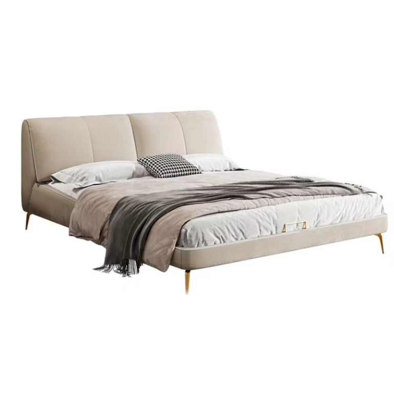 Italian Light Luxury Hotel Home Simple Soft Bed Sets King Queen Size Fabric Upholstered Bed for Bedroom