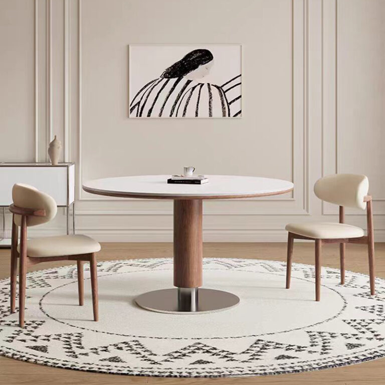 Modern Style Small Household Circular Dining Table Solid Wood Wind Tunnel Stone Rock Board Simple Wooden for Home Furniture