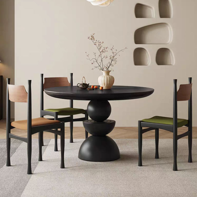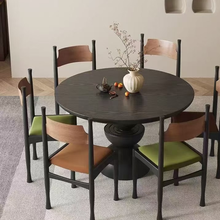 Vintage White Solid Wood Dining Table American Oak Carved Round Dining Table for Six People Custom Dining Table