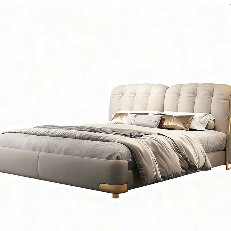 Modern Luxury King Size Soft Bed Set Double Genuine Leather Upholstered with Wooden Frame Eco-Friendly Durable