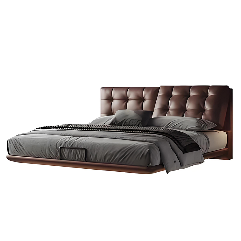 Italian-Style Ecological Leather Platform Bed Simple Soft Double Minimalist Design Adjustable Backrest Bag for Master Bedroom