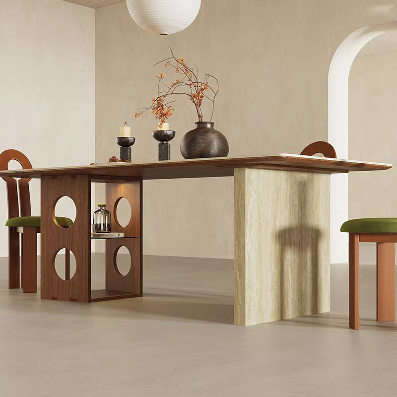 French Cave Rock Dining Table Light Luxury Minimalist Household Solid Wood Rectangular Storage Feet Dining Table