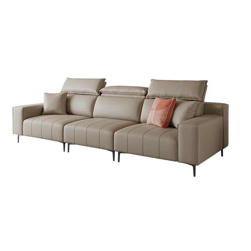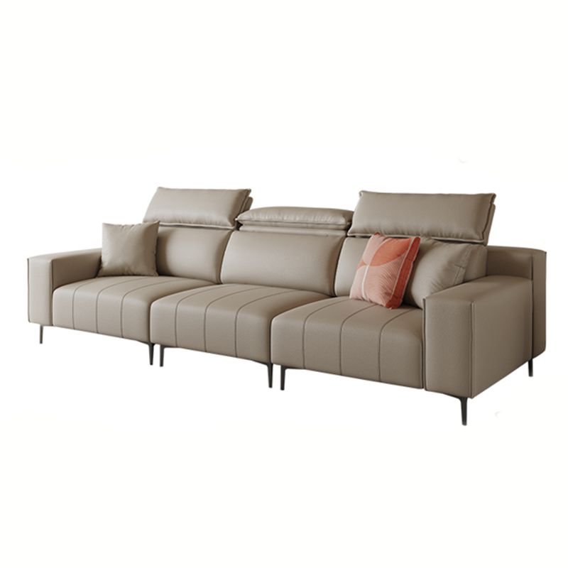 Black Genuine Leather Sofa with High-Elastic Sponge Filling, Luxury Living Room Sofa for Modern Home Spaces