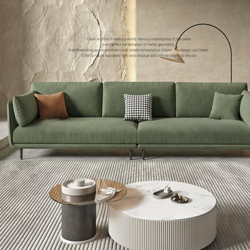 Fabric L-Shaped Sofa Set Living Room Sofas for Villa & Home Green Fabric Used