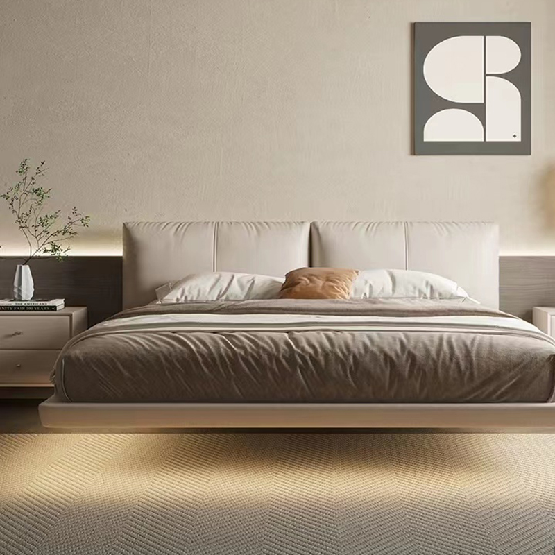 Italian-Style Ecological Leather Platform Bed Simple Soft Double Minimalist Design Adjustable Backrest Bag for Master Bedroom