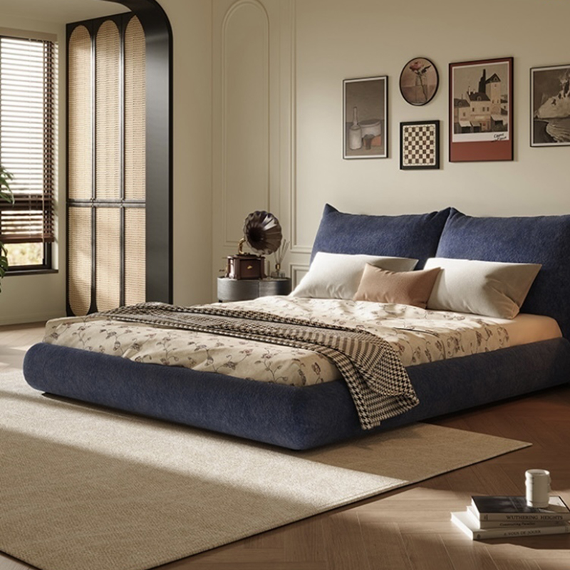Soft Upholstered Bed modern Minimalist Bed wooden Frame Bed Italian Modern Luxury Minimalist Queen Bed Solid Wood Up-Holstered Light Bedside Instagram Popular Bed for Master Bed