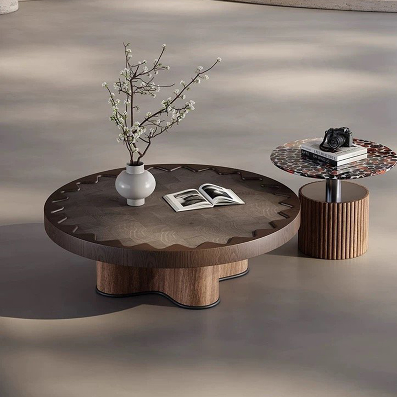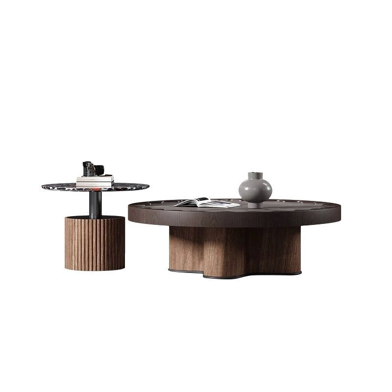 Luxury Wooden Living Room Furniture Black Oak Round Stone Top Nesting Coffee Table