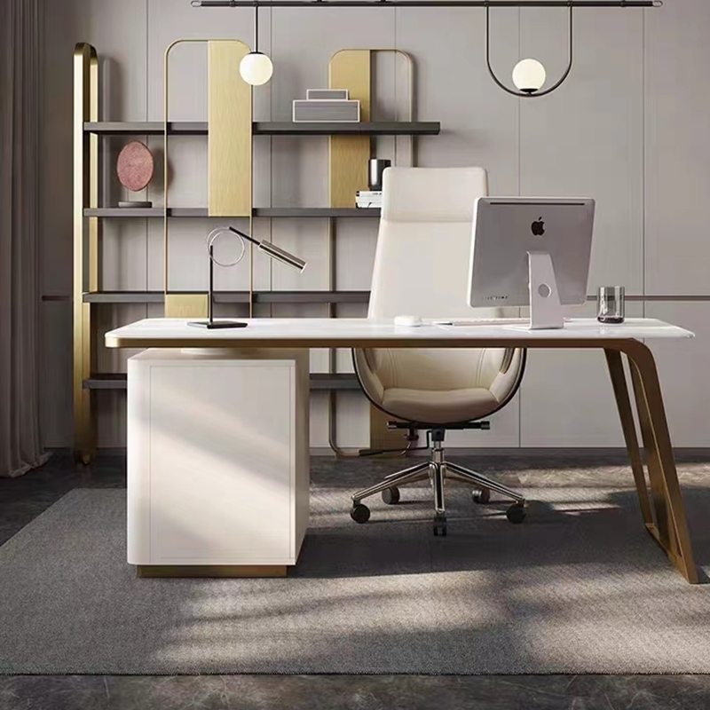 Modern Office Desks Computer Table Furniture Luxury Leather Top Work Desk White Home Office Desk and Chair