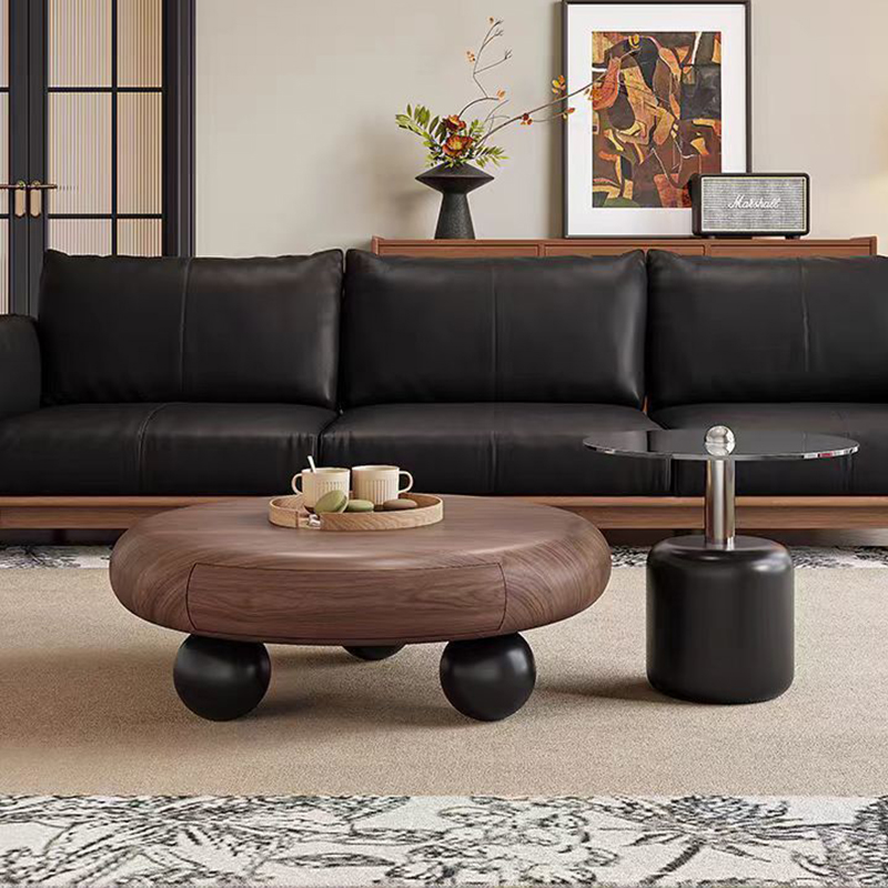 Luxury Wooden Living Room Furniture Black Oak Round Stone Top Nesting Coffee Table