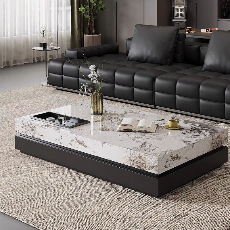 Modern Design Living Room Black Slate Top Coffee Table Luxury Rectangle Low Plinth Marble Coffee Side Table