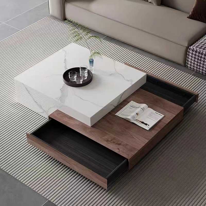 Wooden Coffee Table Hotel Modern Living Room Coffee Table for Home Villa Latest Design Storage Ellipse Coffee Table
