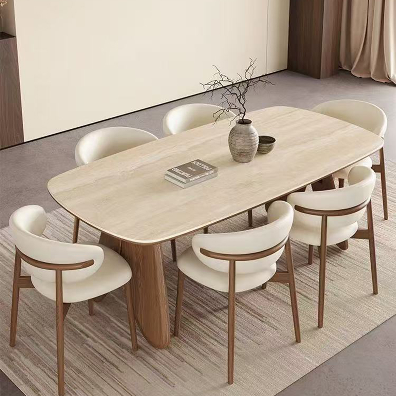 Vintage Cream Wind Solid Wood Rock Plate Dining Table Set Home Small Household Living Room Modern Simple Dining Table
