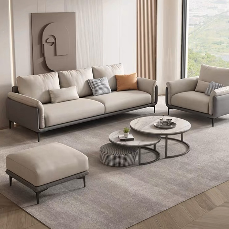 Luxury Leather Sofa Set With Metal Leg Comfortable Living Room Couch Villa Apartment Home Hotel Living Room Furniture Sofa Set
