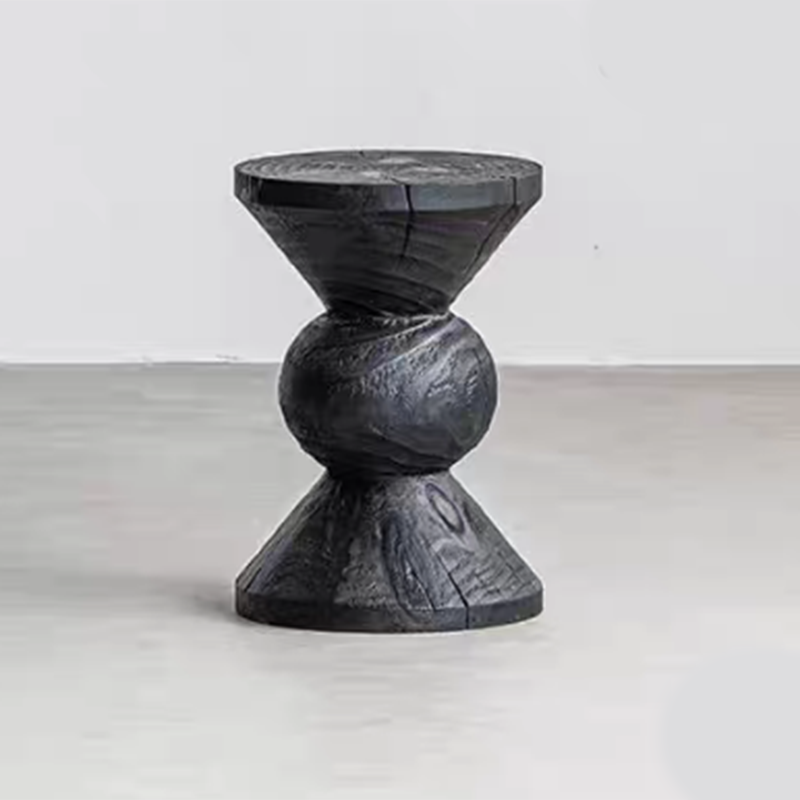Modern Wabi-Sabi Style Carbonized Solid Wood Creative Light Luxury Low Stool Home Bedroom Side Table Coffee Table