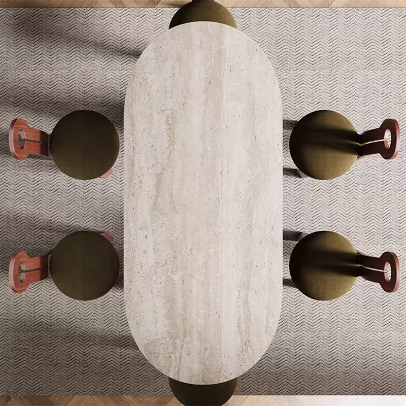 Modern Nordic Design Honed Surface Rose Calacatta Viola Natural Marble Dining Table Oval with Black Solid Wood Legs
